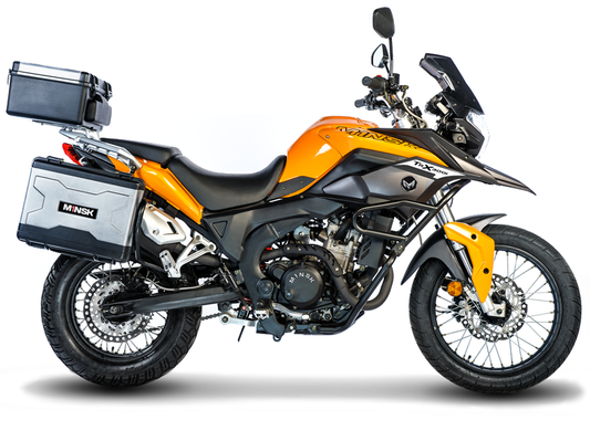 Комплектация Minsk TRX 300i оснащена механической коробкой передач, 0.3 литровым двигателем (26 л.с.). Стоимость данного мотоцикла не объявлена.